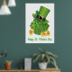 Happy St. Patrick's Day Leprechaun Hat, Gold Coins und Cupcake mit Drei Leaf Clover Kleeblatt Sprinkles Dessert Festivals Illustration Zeichnend Poster