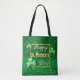Eleganter goldener Glitzer glamouröse St. Patrick's Day Illustration mit 3D-Goldtypografie innerhalb eines goldenen Glitzer-Randes mit elegantem Kleeblatt Klee auf einem wertvollen grünen Hintergrund.