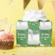 St. Patrick's Day grünes Bier in einer gläsernen Tasse auf weißem Hintergrund mit Kleeblättern. Der weiße Hintergrund kann geändert werden.