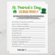 ⭐️ Was es ist: St. Patrick's Day Guess Who Game ist ein Party-Spiel. Füllen Sie die folgenden Informationen aus. Dann wird der Gastgeber Ihre Antworten vorlesen und jedem gelassen, wer wir reden! Jeder Spieler hat drei Chancen zu erraten. Versuchen Sie, zu erraten, wem das Papier gehört!