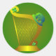 Runde St. Patrick's Day Harfe und Kleeblatt Aufkleber in Grün und Gold.