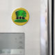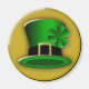 St Patrick’s Day: Leprechaun Hat - LEHA100 © Sunny Mars Designs. Dieser runde Magnet verfügt über einen grünen Kobold mit einem schwarzen Band, einem goldenen Schnürchen und einem daran befestigten Kleeblatt.
