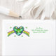 Ein hübsch leuchtendes smaragdgrünes Herz mit einem Klee im Inneren mit Regenbogen und dem Text "Irish Heart".