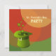Maßgeschneidertes St. Patrick's Day Party Einladung Template mit grünem Leprechaun Hut, irischen Kleeblättern und grünem und orangefarbenem Party Hintergrund. Personalisieren Sie es mit Ihrem eigenen Text oder klicken Sie auf "Anpassen", wenn Sie das Layout, den Text oder die Einladungsgröße ändern möchten. Das Irische zum Glück!