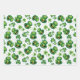 St. Patrick's Day Packpapier Blätter mit Leprechaun's Hat, Kleeblatt und grüne Punkte auf weißem Hintergrund für Ihre St. Patrick's Day Geschenkverpackung.