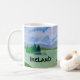 Diese St Patrick's Day Tasse ist mit einer Landschaft in Grün, Blau und Gra.y dekoriert. Geben Sie es als Geschenk an einen besonderen St Patrick's Day!