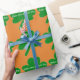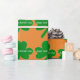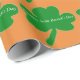 Feierlich grüne Kleeblätter auf orangefarbenem Hintergrund für die Geschenkverpackung am St. Patrick's Day. Verlass den Text so, wie er ist, oder personalisiere ihn, indem du dein eigenes einfügst, oder lösche das Textfeld. Ideal für jeden Iren. Originelle Kunstwerke und Design von TamiraZDesign.