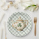 Diese zauberhaften St. Patrick's Day-Papierteller zeigen eine Aquarell-Kleeteekanne mit einem koordinierenden grün-weißen Gingham-Hintergrund.