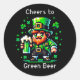 Niedliche Leprechaun Pixelkunst. Zitat: "Gefällt dem grünen Bier." St Patrick's Day Sticker.