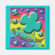 Rainbow im Hintergrund, mit 4 Blatt Kleeblatt, St Patricks Day Text.