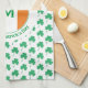 Stilvolles ST PATRICK'S DAY Kleeblatt Küchentuch, entworfen mit einem allumfassenden Kleeblatt-Muster und irischer Flagge. In der Mitte befindet sich ein Auszug aus einem inspirierenden Zitat von St Patrick, in dem es heißt, CHRIST BE WITH ME plus HAPPY ST PATRICK'S DAY in gebogenem Text. In der Mitte der IRISH FLAG gibt es ein MONOGRAM. Alle Texte sind KUNSTBAR, sodass Sie den Text mit Ihrem eigenen Gruß und/oder Ihrem Namen personalisieren können.
