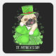 St Patricks Day Puppy Mops Quadratischer Aufkleber