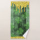Shamrocks d'aquarelle du jour de Glam St. Patrick sur arrière - plan en bois vert en détresse avec gouttes d'or en parties scintillant de glam.