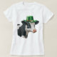 T - Shirt für den St. Patrick's Day oder immer will du, deinen irischen Stolz mit einem Aquarellbild einer schwarz-weißen Kuh mit einem kelgrün-Hut mit Goldband, einem weißen Tagestext und Kleeblättern vor dem Hut zu zeigen. Zusätzliche Stile verfügbar. Das Bild muss unter Umständen an unterschiedliche Größen angepasst werden.