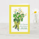 St. Patrick's Day Wünsche, Papier Grußkarte für eine Tante und Onkel. Feiern Sie Grün und Frühling mit dieser bunten und leuchtenden Karte in den Frühlingsfarben Grün, Gelb und Weiß. Das Foto eines federfarbenen Bogens ist um ein Bouquet gebunden. Art, Bild und Vers Copyright © Shoaff Ballanger Studios, 2021.
