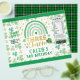 [ALL text is EDITABLE, außer DREI IST EIN CHARM] Thema: St Patrick's Day Rainbow Kleeblatt. Gelegenheiten: Geburtstagsparty für Kinder. Stil: Niedlich, elegant, Boho. Farben: Grün, Gold, Weiß. Grafiken: Regenbogen, Wasserfarbe, False Gold.