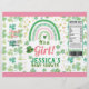 Thema: St Patrick's Day Rainbow Kleeblatt. Gelegenheiten: Kinderdusche. Stil: Niedlich, elegant, Boho. Farben: Grün, Rosa, Gold, Weiß. Grafiken: Regenbogen, Wasserfarbe, False Gold.