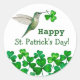 Niedlicher St. Patrick's Day Aufkleber mit einem Kolibri, der ein Kleeblatt trägt.