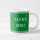 Diese Jumbo-Kaffee-Tasse wird mit einem St. Patrick's Lucky Day Print gezeigt. Passen Sie diese Tasse an oder kaufen Sie, wie es ist.