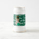 St Patrick's Lucky Day Cute Cat with Leprechaun Hat, generative content on your beer stein. The cat is emerging from the green background and keep his paws on a shamrock. You can change the cat's photo with your own, using the Remove Background option, and keep the rest of images, if it is needed you may align the hat on your cat's head. You will have a funny beer mug. A nice gift for cat lovers.