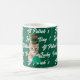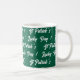 St Patrick's Lucky Day Cute Cat with Leprechaun Hat, generative content on your coffee mug. The cat is emerging from the green background with greetings and keep his paws on a shamrock. You can change the cat's photo with your own, using the Remove Background option, and keep the rest of images, if it is needed you may align the hat on your cat's head. A nice Irish liked mug gift for cat lovers.