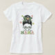 Dieses niedliche und glückliche Design besticht durch die Worte "Lucky Mama" mit bunten vierblättrigen Kleeblatten und einer Frau mit einem unordentlichen Bun. Es ist ein perfektes Geschenk für Mütter für St. Patrick's Day.