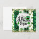 Diese Urlaubskarte verströmt festliche St. Patrick's Day-Fröhlichkeit mit ihrem lebhaften und spielerischen Design. Der Hintergrund besteht aus abwechselnden vertikalen Streifen mit grünen karierten und verschiedenen Farbtönen von grünen Kleeblättern und Kleben. Glittery gold Konfetti schmückt die oberen und unteren Ränder und fügt eine feierliche Touch hinzu. In der Mitte befindet sich der Text "lass the SHENANIGANS Begin" in einem schwarzen Schriftart, in dem "SHENANIGANS" in größeren, mutigeren Buchstaben hervorgehoben wird. Um den Text herum befinden sich mehrere grüne Kleeblätter und ein grüner Kobold, der mit einem schwarzen Band und einem goldenen Schnabel geschmückt ist. Das Gesamtbild ist hell, fröhlich und passt perfekt zum St. Patrick's Day. Es eignet sich hervorragend für einen Aufenthalt mit einer Urlaubskarte.