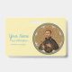 Peter Claver (1580-1654) war ein spanischer Jesuitenpriester und Missionar. Im Jahr 1610 bot St. Peter Freiwilligendienst im Neuen Königreich Granada auf dem amerikanischen Kontinent an, zu dem das heutige Panama, Kolumbien und Venezuela gehörten. Dort arbeitete er 40 Jahre lang bei Sklaven, als sie in Cartagena ankamen, einem wichtigen Drehkreuz im transatlantischen Sklavenhandel, und auf den Plantagen im benachbarten Land. Seine unermüdlichen Bemühungen, die Sklaven nicht nur durch Predigen Christi zum Katholizismus zu bekehren, sondern auch ihr Leiden zu mildern, verdienten ihm den Begriff "Sklave der Afrikaner". + Hier wird der heilige Peter in Jesuitengarb gezeigt - ein schwarzer Kassock und ein farbiger Kap. Er hält ein einfaches, braunes Holzkreuz und eine Dornkrone, Symbole Jesu als "Mann der Trauer und mit Kummer vertraut" (Isaiah 53:3). Das Bild ist in einen inneren Rahmen eingebettet, der an ein gotisches achtblättriges Rose- (oder Radfenster) erinnert; die Ecken des einfachen, quadratischen Außenrahmens sind mit heraldischen Dickstäben gefüllt. + St. Peter Claver starb am 8. September 1654 von natürlichen Ursachen nach einer langen Krankheit. Er ist Schutzpatron der Rassenjustiz, der Afroamerikaner, afrikanischer Missionen, Sklaven und der Republik Kolumbien. + Fest: 9. September + Image Credit (BK 058): Antique image of S[aint] Petrus [Peter] Claver, S.J., ursprünglich in Chromolithografie von B. Kühlen, Mönchengladbach, Deutschland, unnummeriert Jesuit Series, Ende des 19. Jahrhunderts, aus der privaten Sammlung religiöser Ephemene des Designers veröffentlicht. + Fühlen Sie sich frei, Texte, Schriftart und Farben zu ändern!