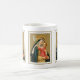 Sie haben die Wahl, ob Sie dieser hübschen Tasse einen bunten Hintergrund hinzufügen oder sie wie besehen verlassen haben! Wenn Sie sich für einen farbigen Hintergrund entscheiden, lesen Sie die Postkarte Farbpalette für dieses Bild, um die empfohlenen Farbtöne zu erhalten. Farbpalettenpostkarten finden sich in der zugehörigen COLLECTION eines Bildes und in der speziellen COLLECTION für Farbpaletten. Oder wählen Sie selbst, was Sie wollen! Das ist Zazzle! Experimentieren! + Wie der heilige Anthony von Padua (JM 05) und einige andere Mystiker der Kirche, die St. Rose von Lima (1586-1617) erlebte Visionen des Christkindes. Im Alter von fünf Jahren wurde der St. Rose beigebracht, von Ihm zu lesen und zu schreiben, als die Erwachsenen um sie herum damit beschäftigt waren, sie zu lehren. Als Erwachsener wandelte die St. Rose einen Raum in ihrem Haus um, in dem eine kleine Statue des Jesuskindes festgehalten wurde, die in eine Krankenanstalt für die Kranken der Bedürftigen eingebettet war. Dort vollbrachte sie viele Wunder der Heilung, die sie dem "kleinen Arzt" zuschrieb, dem "Christlichen Kind". Schließlich erlebte sie kurz vor ihrem Tod eine mystische Ehe. Das Kind Jesus sagte zu ihr: "Rose meines Herzens, sei meine Ehefrau!" + Das Bild hier zeigt eine intime, zärtliche Umarmung zwischen der Rose und dem Christkind, das sie verehrt hat. Die St. Rose wird durch ihre Krone der Rose und der dominikanischen Gewohnheit anerkannt. Für sie hält der Junge Jesus ein Spray aus weißen Lilien, Symbol der Reinheit. + Fest: August 23 + Image Credit (M 023): Antique image of S. Rosa Limana, Ameriae Patrona [St. Rose Lima, Schutzpatron der Amerikas] aus einem devotionalen Druck in Chromolithografie aus dem späten 19. Jahrhundert, ursprünglich gedruckt von Stab[ilmento] P. Casetti & Co., Rom, Italien, unnummeriert eine inicanische Serie aus der privaten Sammlung religiöser Ephemeriden des Designers.