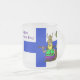 Auf dieser Tasse habe ich St. Urho auf der finnischen Flagge (Blaues Kreuz auf weißem Hintergrund) überlagert. Sie können den Text ändern und/oder auf der anderen Seite dieser Tasse mehr hinzufügen. Sie können dieses Design auch auf einer der anderen Tasse-Optionen angeboten.