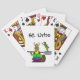 In diesem Design hat St. Urho es mit einem sassy Grasshopper zu tun, der auf seiner Pitchfork sitzt und mit der rechten Hand das "Peace"-Zeichen trägt.