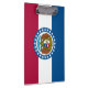 Dieses Design zeigt die Flagge von Missouri, einem Staat im Mittleren Westen der Vereinigten Staaten. Missouri grenzt an acht Staaten (die am meisten mit Tennessee verbunden sind): Iowa im Norden, Illinois, Kentucky und Tennessee (über den Mississippi) im Osten, Arkansas im Süden und Oklahoma, Kansas und Nebraska im Westen. Im Süden befinden sich die Ozarks, ein bewaldetes Hochland, das Holz, Mineralien und Erholung liefert. Der Missouri, nach dem der Staat benannt ist, fließt durch das Zentrum des Staat in den Mississippi, der die Ostgrenze Missouris bildet. Die Hauptstadt Missouri ist Jefferson City, während die größte Stadt in Missouri Kansas City ist; andere Großstädte in Missouri sind St. Louis, Springfield, Kolumbien, Independence, Lees Gipfel, O'Fallon, St. Joseph, St. Charles und St. Peters.