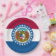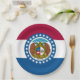 Dieses Design zeigt die Flagge von Missouri, einem Staat im Mittleren Westen der Vereinigten Staaten. Missouri grenzt an acht Staaten (die am meisten mit Tennessee verbunden sind): Iowa im Norden, Illinois, Kentucky und Tennessee (über den Mississippi) im Osten, Arkansas im Süden und Oklahoma, Kansas und Nebraska im Westen. Im Süden befinden sich die Ozarks, ein bewaldetes Hochland, das Holz, Mineralien und Erholung liefert. Der Missouri, nach dem der Staat benannt ist, fließt durch das Zentrum des Staat in den Mississippi, der die Ostgrenze Missouris bildet. Die Hauptstadt Missouri ist Jefferson City, während die größte Stadt in Missouri Kansas City ist; andere Großstädte in Missouri sind St. Louis, Springfield, Kolumbien, Independence, Lees Gipfel, O'Fallon, St. Joseph, St. Charles und St. Peters.