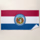 Dieses Design zeigt die Flagge von Missouri, einem Staat im Mittleren Westen der Vereinigten Staaten. Missouri grenzt an acht Staaten (die am meisten mit Tennessee verbunden sind): Iowa im Norden, Illinois, Kentucky und Tennessee (über den Mississippi) im Osten, Arkansas im Süden und Oklahoma, Kansas und Nebraska im Westen. Im Süden befinden sich die Ozarks, ein bewaldetes Hochland, das Holz, Mineralien und Erholung liefert. Der Missouri, nach dem der Staat benannt ist, fließt durch das Zentrum des Staat in den Mississippi, der die Ostgrenze Missouris bildet. Die Hauptstadt Missouri ist Jefferson City, während die größte Stadt in Missouri Kansas City ist; andere Großstädte in Missouri sind St. Louis, Springfield, Kolumbien, Independence, Lees Gipfel, O'Fallon, St. Joseph, St. Charles und St. Peters.