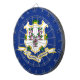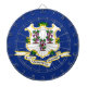 In diesem Design ist die Flagge von Connecticut zu sehen, dem südlichsten Staat in der Region Neuengland im Nordosten der Vereinigten Staaten. Es grenzt im Osten an Rhode Island, im Norden an Massachusetts, im Westen an New York und im Süden an Long Island Sound. Nach den meisten Quellen ist es Teil von Neuengland, obwohl große Teile von ihm häufig mit New York und New Jersey als Tri-Staat-Gebiet gruppiert sind. Der Staat ist nach dem Fluss Connecticut benannt, der den Staat ungefähr halbiert. Der Name "Connecticut" leitet sich von dem Wort "Mohegan-Pequot" für "Long Tidal River" ab. Der offizielle Spitzname von Connecticut ist der "Verfassungs-Staat", aber auch bekannt als der "Nutmeg-Staat", der "Provisions-Staat" oder das "Land der beständigen Lebensräume". Das lateinische Motto lautet "Qui transtulit sustinet", d.h. "Wer sich transplantiert hat, erhält". Die Fahne des Staat von Connecticut enthält einen barocken Schild mit drei Weinreben, die jeweils drei lila Trauben auf einem königsblauen Feld tragen. Die Hauptstadt von Connecticut ist Hartford und die bevölkerungsreichste Stadt des Staat ist Bridgeport. Weitere wichtige Städte in Connecticut sind New Haven, Stamford, Waterbury, Norwalk, Danbury, New Britain, Bristol, Meriden, West Haven und Milford.