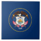 Dieses Design zeigt die Flagge von Utah, die ein Staat im Western United Staaten ist. Es grenzt im Osten an Colorado, im Nordosten an Wyoming, im Norden an Idaho, im Süden an Arizona und im Westen an Nevada. Es Touch auch eine Ecke von New Mexico im Südosten. Die Staat-Hauptstadt von Utah ist Salt Lake City. Die Staatsflagge von Utah besteht aus dem Siegel Utah, das in einem goldenen Kreis auf einem Hintergrund dunkelmarineblau umkreist ist. Das Siegel enthält das Motto des Staat "Industrie".