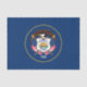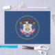 Dieses Design zeigt die Flagge von Utah, die ein Staat im Western United Staaten ist. Es grenzt im Osten an Colorado, im Nordosten an Wyoming, im Norden an Idaho, im Süden an Arizona und im Westen an Nevada. Es Touch auch eine Ecke von New Mexico im Südosten. Die Staat-Hauptstadt von Utah ist Salt Lake City. Die Staatsflagge von Utah besteht aus dem Siegel Utah, das in einem goldenen Kreis auf einem Hintergrund dunkelmarineblau umkreist ist. Das Siegel enthält das Motto des Staat "Industrie".
