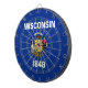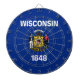 Dieses Design zeichnet sich durch die Staatsflagge von Wisconsin aus, das sich in den Regionen Mittelwesten und Große Seen der Vereinigten Staaten befindet. Es grenzt im Westen an Minnesota, im Südwesten an Iowa, im Süden an Illinois, im Osten an den Michigan-See, im Nordosten an Michigan und im Norden an den Superior-See. Die Staat-Hauptstadt von Wisconsin ist Madison, und ihre größte Stadt ist Milwaukee. Der Staat ist einer der führenden Milchproduzenten des Landes und wird als "Amerikas Dairyland" bezeichnet. Es wird auch als "Badger Staat" bezeichnet. Die Staatsflagge von Wisconsin zeigt das Wappen des Staat auf blauem Hintergrund; sie zeigt auch den Namen des Staat und das Jahr 1848, das Jahr, in dem Wisconsin in die Gewerkschaft aufgenommen wurde.