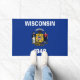 Dieses Design zeichnet sich durch die Staatsflagge von Wisconsin aus, das sich in den Regionen Mittelwesten und Große Seen der Vereinigten Staaten befindet. Es grenzt im Westen an Minnesota, im Südwesten an Iowa, im Süden an Illinois, im Osten an den Michigan-See, im Nordosten an Michigan und im Norden an den Superior-See. Die Staat-Hauptstadt von Wisconsin ist Madison, und ihre größte Stadt ist Milwaukee. Der Staat ist einer der führenden Milchproduzenten des Landes und wird als "Amerikas Dairyland" bezeichnet. Es wird auch als "Badger Staat" bezeichnet. Die Staatsflagge von Wisconsin zeigt das Wappen des Staat auf blauem Hintergrund; sie zeigt auch den Namen des Staat und das Jahr 1848, das Jahr, in dem Wisconsin in die Gewerkschaft aufgenommen wurde.