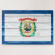 Künstlerische Darstellung der West Virginia Staatsflagge mit Grunge Textureffekten.