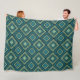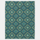 Diese große Fleece-Decke hat ein Art Deko-Design von Diamantformen mit Diagonallinien und farbigen Diamanten in zwei Farbtönen aquamarin.