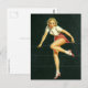 Klassische PinUp-Karte mit einem schönen Pinup, das einen Stacheldrahtzaun überquert und dabei ihren Rock got hat, der von Al Buell (1910-1996) gemalt wurde