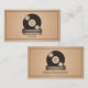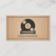 A vintage-style business card with an aesthetic evoking nostalgia and a love for analog music, and featuring a stack of vinyl records in a warm, muted sepia tone. The topmost record has a faded label displaying customizable "Rock & Folk" text.