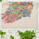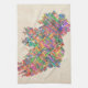 Eine TypografieTextabbildung von Irland kennzeichnend über 590 Großstädten und Städten innerhalb Irlands. Mehrfarbiger Text auf einem Vintagen Arthintergrund.