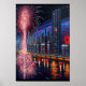 Neujahrstag in der Stadt am Ozean und mit Feuerwerk am Himmel. Das ist eine künstlerische KI.