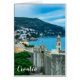 Malerei der Stadtmauer, Turm und blaues Meer während des sonnigen Sommertages in Dubrovnik, Kroatien. Atemberaubende Aussicht auf die Stadtmauer von Dubrovnik und die Altstadt von Dubrovnik. Digitales Gemälde.