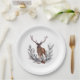 Majestätischer Hirsch mit hellgrau-rostig-braunem Wintergarten mit Heiligen, Beeren und Eukalyptus-Blätter.