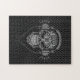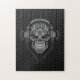 Ein durchdachtes DJ zuckern den Schädelentwurf, der mit verwickeltem Wirbel und Punktmustern verziert wird. Kopfhörer sitzen auf den Schädel mit zwei Drähten, die unten hängen. Die Komplexlinien und -kreise sind festes Schwarzes, während der Innenraum des Schädels Edelstahlbeschaffenheiten und silberne Farben beendet wird. Der Schädel sitzt auf einen Stahlmaschenhintergrund, der dieses industrielle Muster abschließt. Dieser aggressive Tag des toten inspirierten Bildes ist eine bunte Darstellung von DJ-Kultur.