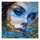 "Steel Gaze" - Frauen im Wasser. Dieses mächtige Bild zeigt das Gesicht einer Frau halb untergetaucht, halb auftaucht aus dem Wasser, ihre intensiven blauen Augen in einem entschlossenen Blick eingeschlossen. Die durch Sonnenlicht erhellten Wasserkonturen heben ihre Stärke hervor. Es repräsentiert die innere Stärke und Widerstandskraft, die erforderlich sind, um das turbulente Wasser des Lebens zu steuern.