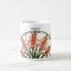 Celebrate August with this Gladiolus stained glass-inspired mug. Coral and pink blooms glow in a circular design. Not real stained glass, printed on ceramic. Add a personalized name and flower meaning (“Strength”) for birthdays or keepsakes.